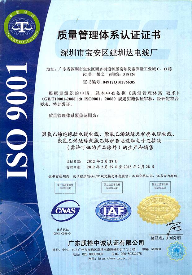 深圳建圳達(dá)電線電纜有限公司,成立于2000年,是一家電線電纜制造商,我們通過了世界各地不同市場的多數(shù)認(rèn)證,如:CCC、RoHS、CB、SAA、TUV、VDE、PSE、BPS、UL、CSA。我們根據(jù)定制產(chǎn)品不斷更新新的認(rèn)證。經(jīng)過數(shù)十年的發(fā)展,我們與來自世界各地的客戶建立了長期的合作關(guān)系。我們曾經(jīng)是菲律賓機(jī)場,,柬埔寨的電力站,美國的醫(yī)院,工廠,埃塞俄比亞的水電站項(xiàng)目。我們是一家值得信賴的電線供應(yīng)商。